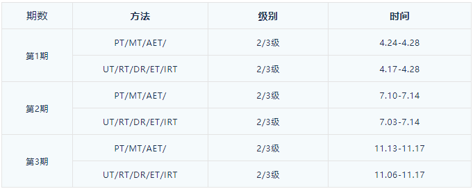 主要开展渗透检测(PT)、磁粉检测(MT)、超声检测(UT)、射线检测(RT)、数字射线(DR)、涡流检测(ET)、红外检测(IRT)、腐蚀检测(AET) 等8种方法的2级和3级的培训和考试鉴定工作。