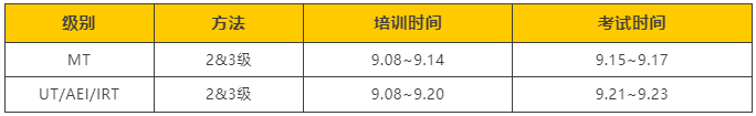 主要开展磁粉检测(MT)、超声检测(UT)、红外热像检测(IRT)、腐蚀检测(AEI) 4种方法/技术2级和3级的培训和考试鉴定工作。